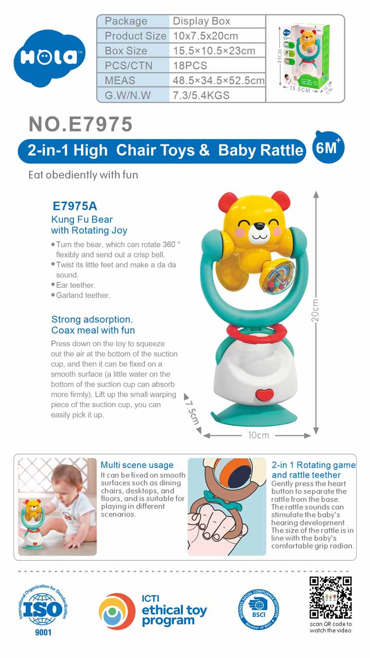 کد کالا : toys1001اسباب بازی جغجغه طرح خرس با قابلیت چرخشی | اسباب بازی ۲ در ۱ صندلی غذا کودک