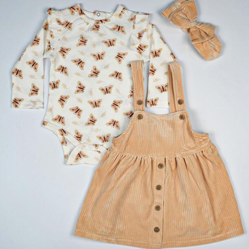 لباس سه تیکه سارافون و بادی دخترانه کد 6001