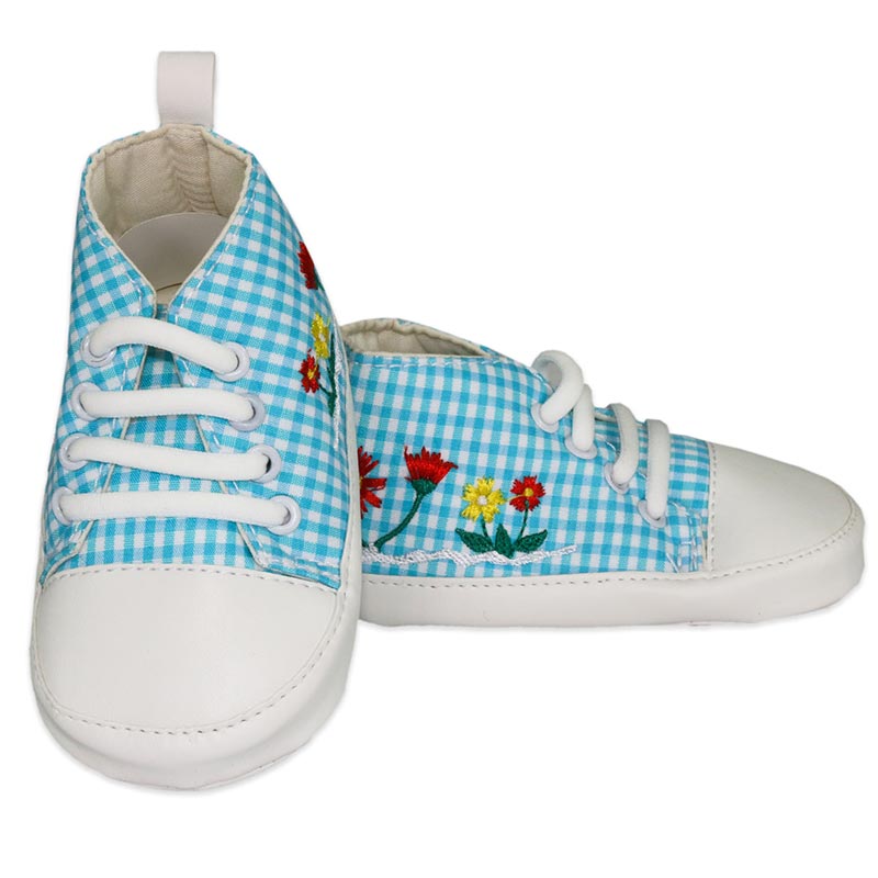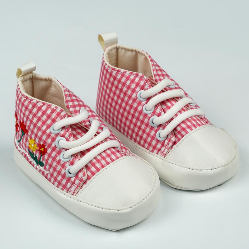 پاپوش کودک دخترانه طرح چهارخونه گلدار